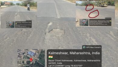 कलमेश्वर शहराच्या प्रवेशद्वारावर खड्ड्यांचा सापळा; प्रशासनाचे दुर्लक्ष, अपघाताची भीती.